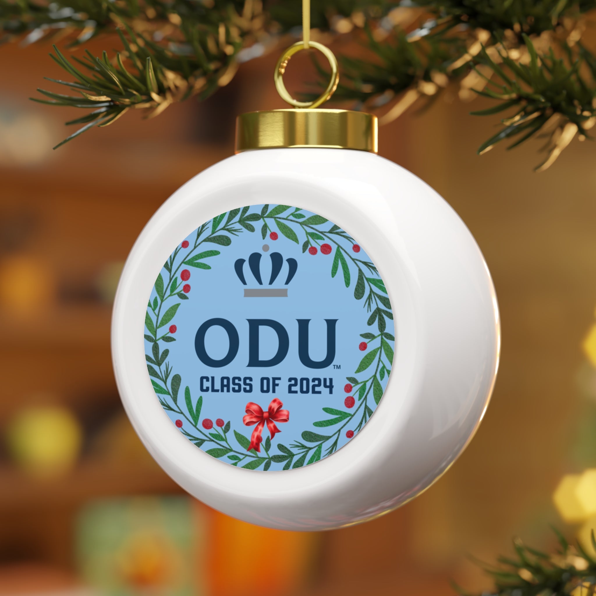 Old Dominion University, Institutional Mark Logo, Customizable Year, Wreath Ball Ornament