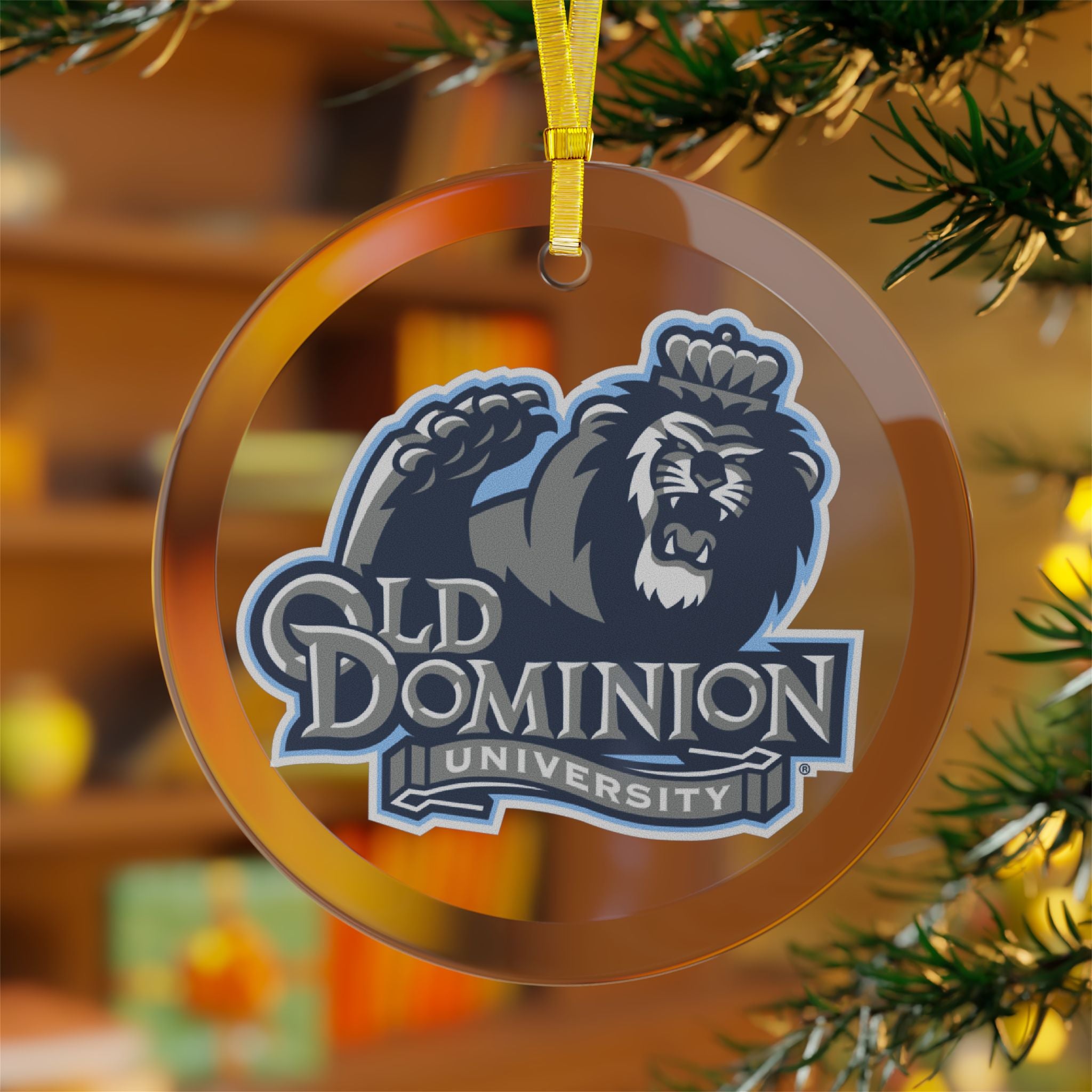Spruce up your tree with this Old Dominion University glass ornament featuring their Secondary Mark Logo 07. Perfect for alumni and fans alike!